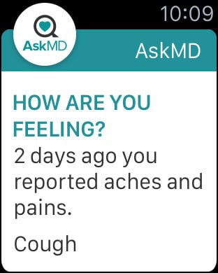The award-winning AskMD app is more than just a symptom checker. AskMD can help you find out what's possibly causing your symptoms, help you find a doctor, get you organized, and ultimately healthier. Whether it's your joint pain, a parent's diabetes or your spouse's cholesterol, this app uses clinically-proven research to help you get from wondering what could be wrong to what you can do about it. AskMD recommends qualified doctors covered by your insurance, lets you save their contact info and arms you with the insights you need for your doctor's appointment - which you also can share privately with your doctor or anyone else you choose. Key Features: • Identify possible causes of your symptoms quickly and easily• Find doctors and specialists qualified to treat your symptoms or condition by location, insurance or specialty, and call directly from the app or save information for future reference• Prepare for your doctor's appointment with a summary of your answers and results • Detects critical or life-threatening conditions and immediately directs you to the nearest emergency room• Create multiple profiles for your family members and friends• Save your medications, insurance, and doctors to organize and keep track of your health information• Upload photos and videos to your consultation to record or share with your doctor • Receive Apple Watch notifications to see if you are feeling better or worse• Integrated with Apple's Health app, AskMD and the Health app work together to give you a better view into your healthWhat people are saying about AskMD:• “AskMD is a health dashboard for your iPhone” - Mashable• “This symptom-checker app lets you keep a digital doctor in your pocket” - Fast Company• “This app is so easy to use. It is very thorough and informative. I highly recommend it!” - Haleigh P.• “The design is great. The info is so easy to get and the results were spot on. Highly recommend. Download today. You will not regret it.” - AskMD User• “This app is exactly what I needed. Too many other symptom checkers have made me a hypochondriac. This app is way more realistic and does a great job of checking up on me. I wish I could give it 6 stars!” - AskMD User• “Love this app! The additional profiles makes managing my parents’ health so much easier. Would recommend for any caregivers.” - AskMD User• “This app is amazing. Absolutely love it. Keeps me informed about all my appointments. Highly recommend.” - Shane S.