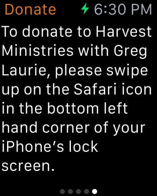 The official Greg Laurie app from Harvest Ministries! Now you can stay connected with Pastor Greg Laurie via your Apple Watch and iPhone.From your Apple Watch you can:• Receive push notifications from Greg Laurie and the Harvest team• Read Daily Devotions from Greg Laurie• Stay up to date with Greg's blog • Make a donation to Harvest Ministries• View the latest from Greg on Twitter and InstagramFor more than 35 years, Harvest and Greg Laurie have been committed to "Knowing God and Making Him Known." For more from Harvest Ministries, including the latest sermon audio and video content, search the App Store for the "Harvest: Greg Laurie" iOS app. For more information on Harvest: Greg Laurie visit harvest.org.