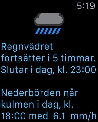 Sky Tracker visar en detaljerad lokal väderprognos för dina geografiska koordinater, där du är just nu, timme för timme. Väderprognosen hämtas från SMHI:s nya avancerande modell som täcker hela Norden med ett rutnät med upplösning på ca 2 km. Med Sky Tracker får du en mer detaljerad och mer relevant väderprognos. De flesta appar försöker sammanfatta dagen med en kort beskrivning av vädret. Om vädret varierar under dagen, vilket det oftast gör, ger denna beskrivning en generell bild om vädret. Sky Tracker kan däremot svara på frågor som t ex: När börjar det regna idag? När blir det sol igen? När slutar vinden att blåsa? Hur långe pågår ovädret? Osv.Den snygga vädergrafiken är skapad av BBC:s berömda och prisbelönade grafiska designer Mike Afford.Apple Watch Om du har en Apple Watch kommer du att kunna se beräknad tidpunkt för nästa nederbörd inom en 7 dagars period och du kommer att få notifikationer när det förekommer risk för regn eller snö.Skriv till oss om om du har synpunkter eller förslag på förbättringar. Adressen till oss hittar du under Support URL här i App Store.För dig som vill veta mer…Sky Tracker bygger på väderprognosdata från SMHI:s nya högupplösta meteorologiska modell. En stor skillnad från den tidigare modellen är att gridavståndet är betydligt kortare, ca 2 km istället för 11 km vilket resulterar i en mycket bättre lokal väderprognos. Sky Tracker skickar dina geografiska koordinater till SMHI:s API och svaret blir 10 dagars väderprognos inom 2 kilometers radie. Denna prognosmodell uppdateras i ett fyra timmars intervall, dygnet runt.Eftersom väderprognosen kommer från en matematisk modell, har vi tagit oss friheten att ignorera nederbördsmängd under 0.5 mm/h. Detta motsvarade bäst vår känsla om hur vi människor uppfattar nederbörd. Om du vill ändra detta så går det bra att göra det i appen Inställningar.Om du pekar på vädersymbolen kan du ta en titt på den obehandlade rådata som kommer från SMHI:s API.Så här skriver SMHI på sin webbsida:"Väderprognosdatabasen, PMP, är en av SMHIs grundprodukter där meteorologerna på väderprognosavdelningen bygger en komplett prognos för de närmaste 10 dygnen utifrån olika modelldata, statistiska anpassningar och manuella editeringar. Denna prognos är sedan grunden till en mängd produkter, exempelvis ortsvädret på smhi.se och i SMHI:s väder-app. Nu finns ett öppet API tillgängligt för att nå denna prognosdata. PMP beräknas på nytt minst sex gånger per dag och tidssteg (datas upplösning i tiden) finns upp till tio dygn. För de första timmarna finns data för varje timma, därefter finns data för var tredje timma, därefter var sjätte timma och för de sista dygnen i databasen är tidsupplösningen 12 timmar."Källa: http://www.smhi.se/klimatdata/oppna-data/meteorologiska-data/api-for-vaderprognosdata-1.34233